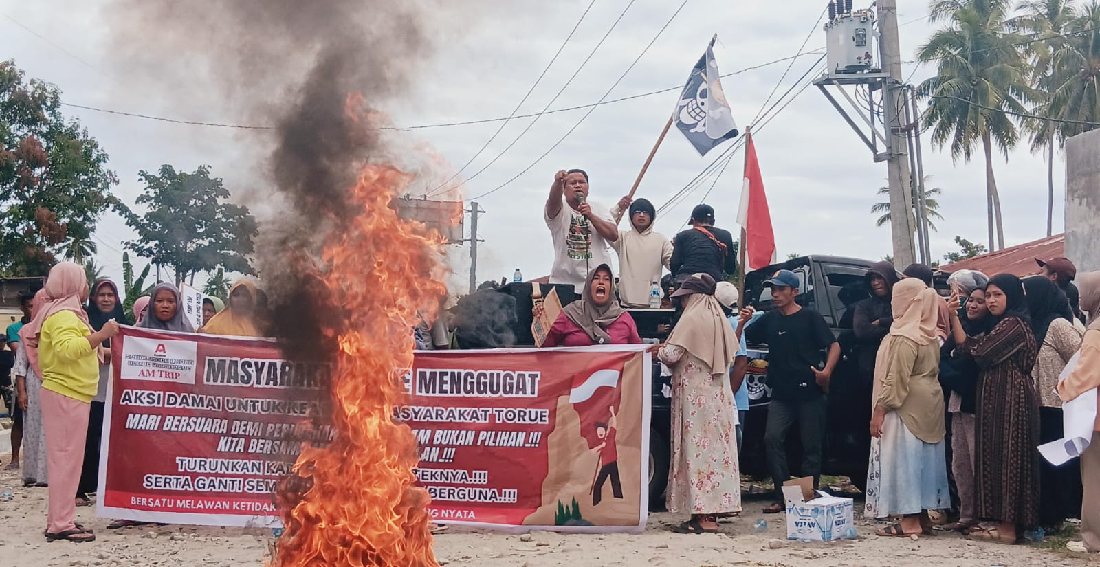 Massa yang tergabung dalam Aliansi Masyarakat Torue Ingin Perubahan (AM TRIP) menuntut Kepala Desa Torue, Kalman M. Andi Mahmud, segera mundur dari jabatannya.