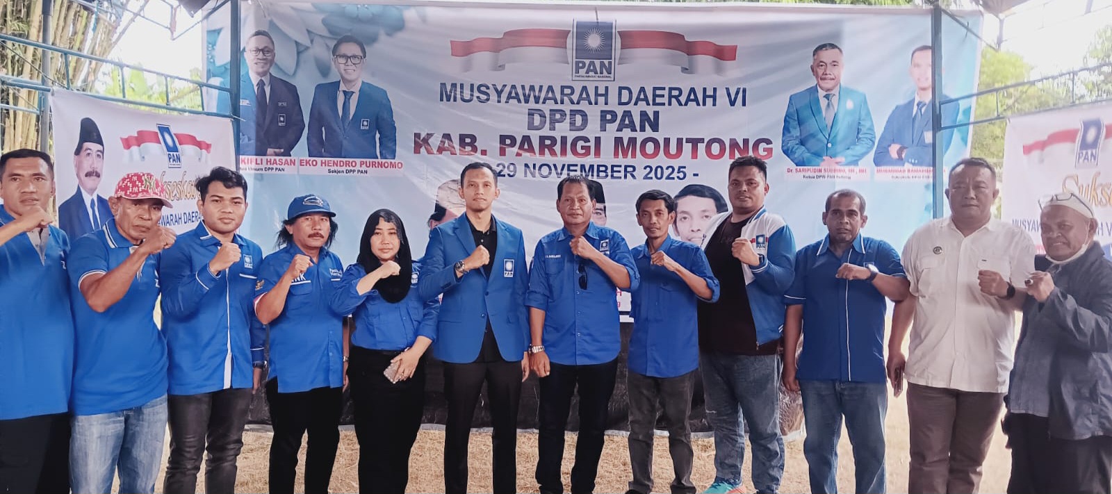 Parimo,Updatesulawesi.id — Musyawarah Daerah (Musda) VI Dewan Pimpinan Daerah (DPD) Partai Amanat Nasional (PAN) Kabupaten Parigi Moutong tahun 2025 resmi menetapkan Husen H. Mardjengi sebagai Ketua DPD PAN Parigi Moutong periode 2025–2029.