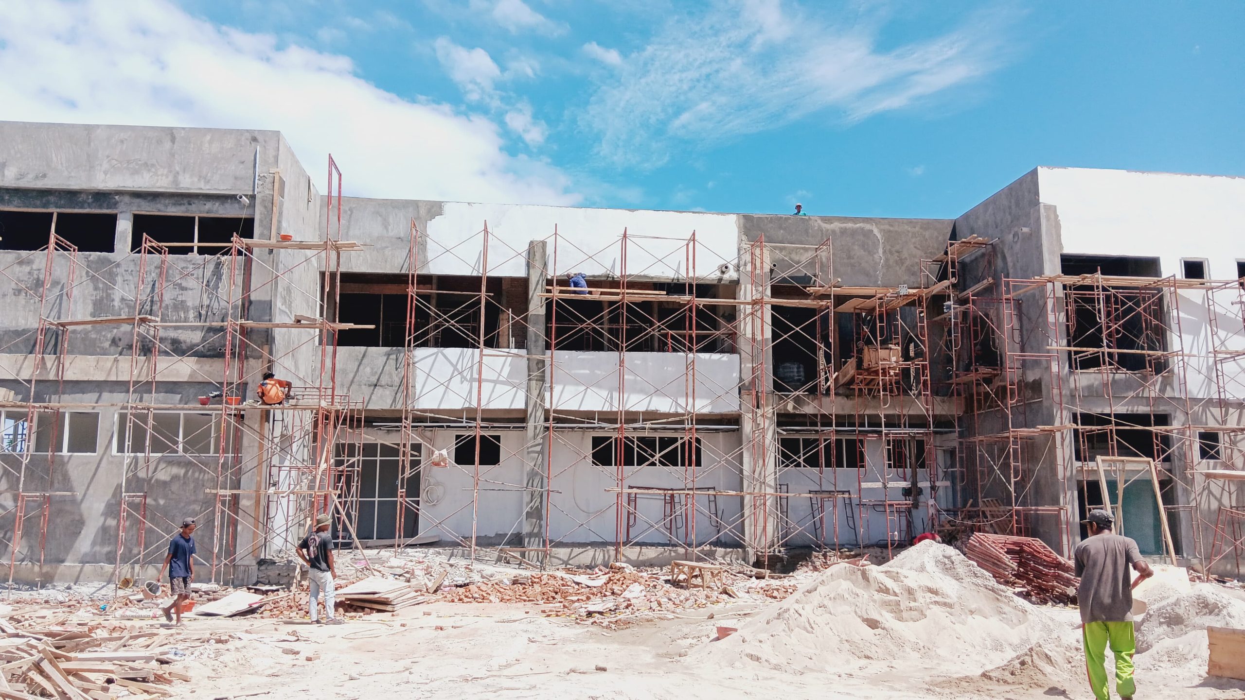 Berdasarkan penyampaian Chandra di lokasi, pekerjaan Labkesmas saat ini mencakup tahap finishing, plesteran, serta pemasangan lantai.