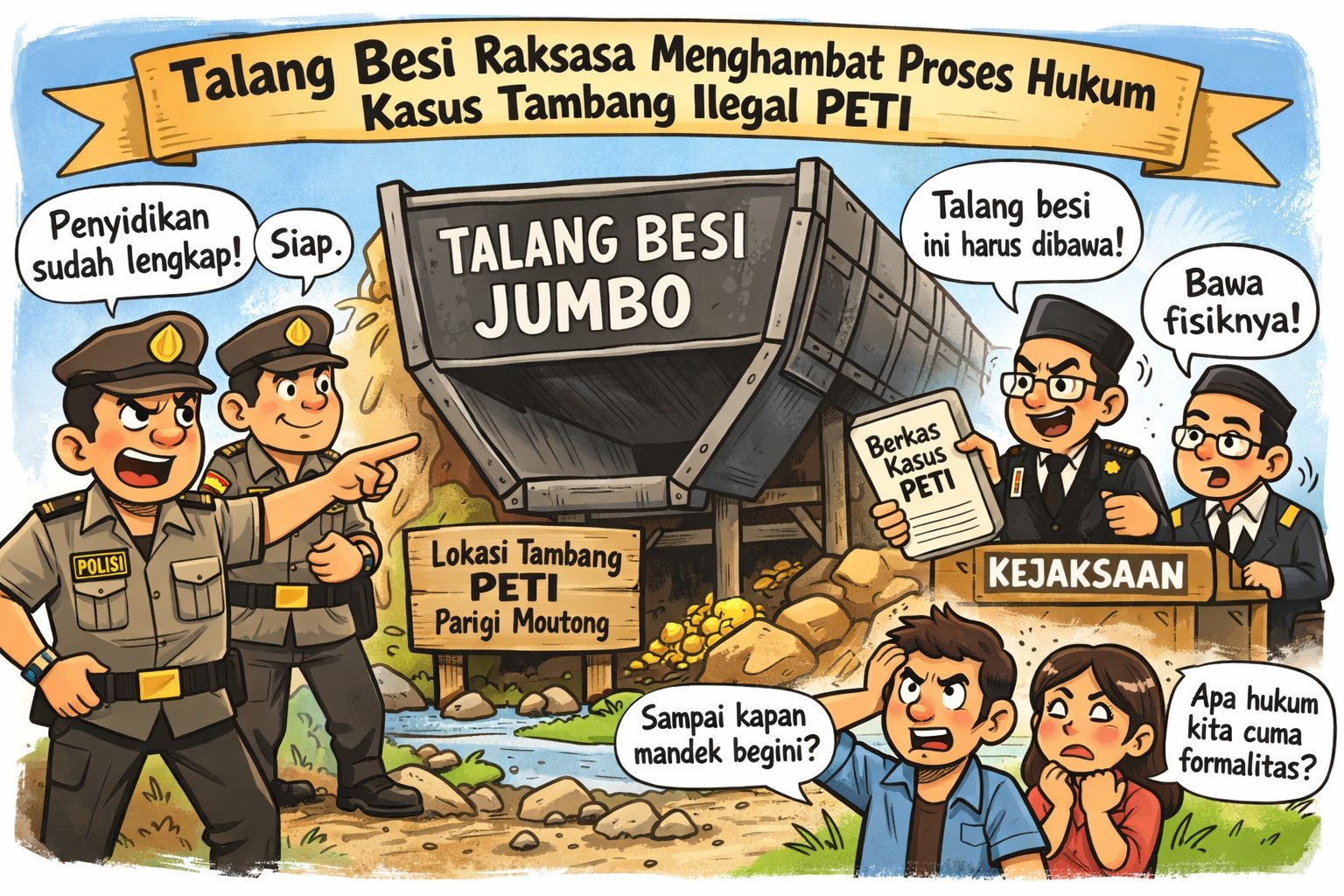 Kasus yang seharusnya menjadi pintu masuk pemberantasan tambang ilegal justru tersendat di meja aparat penegak hukum hanya karena satu persoalan teknis: talang jumbo dari besi yang belum dihadirkan secara fisik sebagai barang bukti.