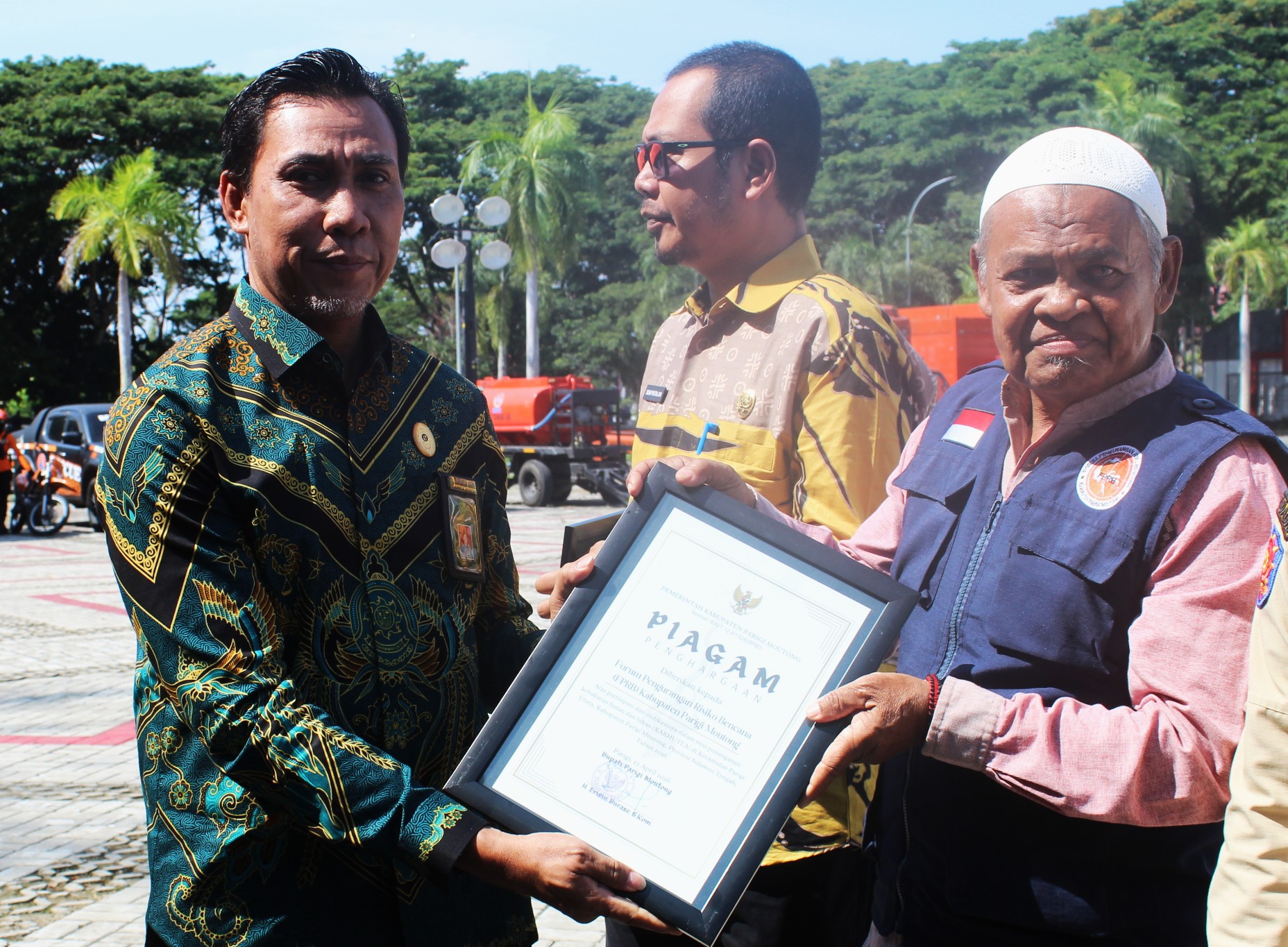 Penghargaan tersebut diserahkan kepada Ketua FPRB Kabupaten Parigi Moutong, Arifin Lamalindiu, S.Pd., sebagai bentuk apresiasi atas kontribusi nyata forum dalam mendukung upaya penanggulangan bencana di daerah.