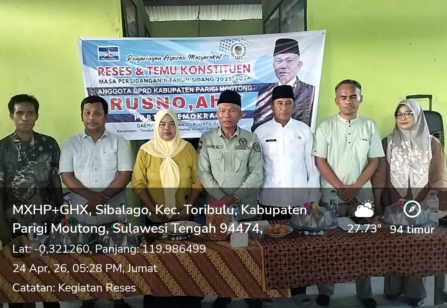 Parimo, Updatesulawesi.id – Anggota DPRD Kabupaten Parigi Moutong dari Fraksi Partai Demokrat, Rusno A.H. T., melaksanakan kegiatan reses masa persidangan tahun 2026 di Kantor Desa Sibalago, Kecamatan Toribulu, Jumat (24/04/2026). Pertemuan ini menjadi forum bagi masyarakat untuk menyampaikan aspirasi, khususnya terkait pemulihan pascabencana banjir yang terjadi pada tahun 2024.